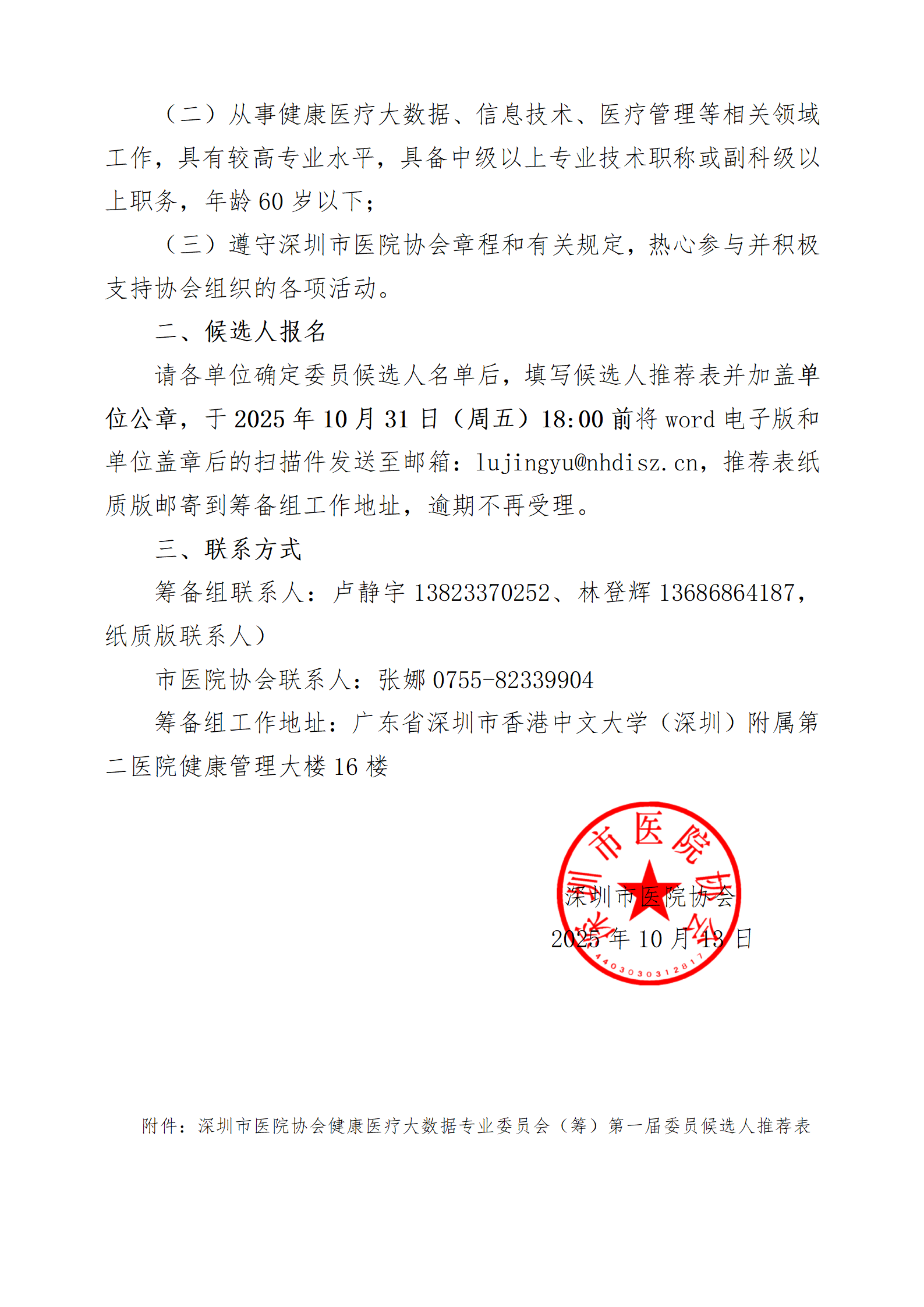 关于招募深圳市医院协会健康医疗大数据专业委员会(筹)第一届委员候选人的通知.pdf
