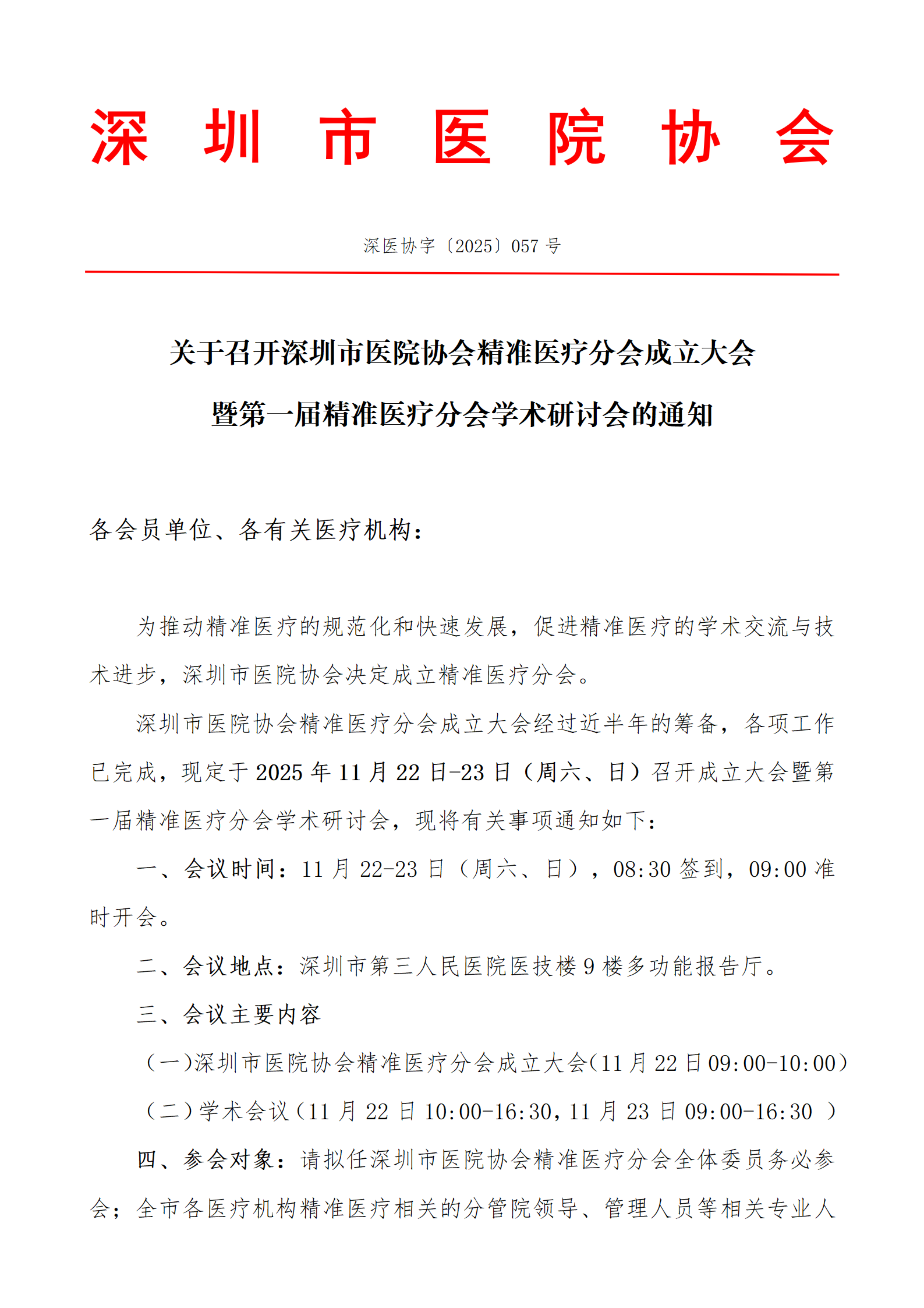 关于召开深圳市医院协会精准医疗分会成立大会的通知.pdf
