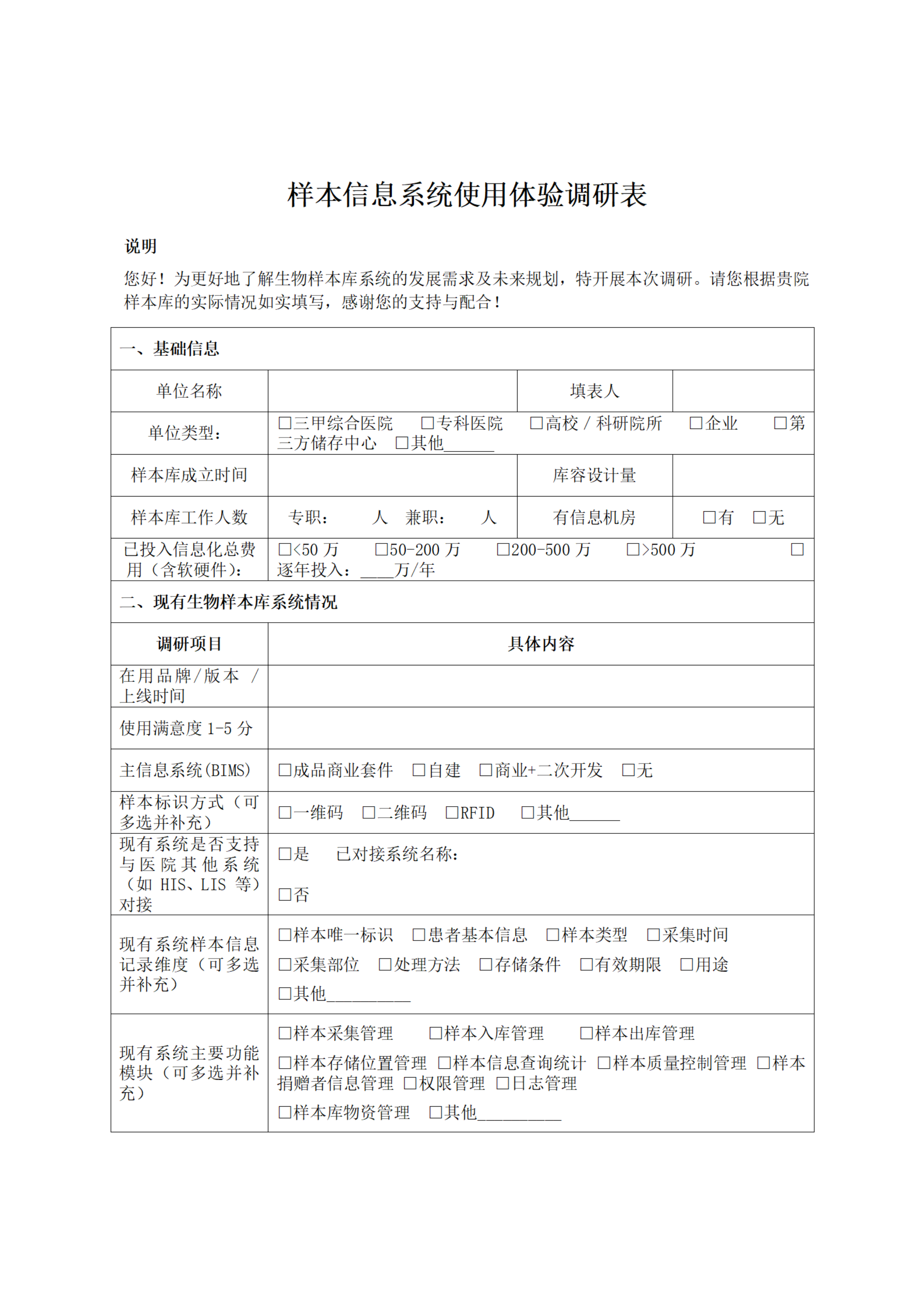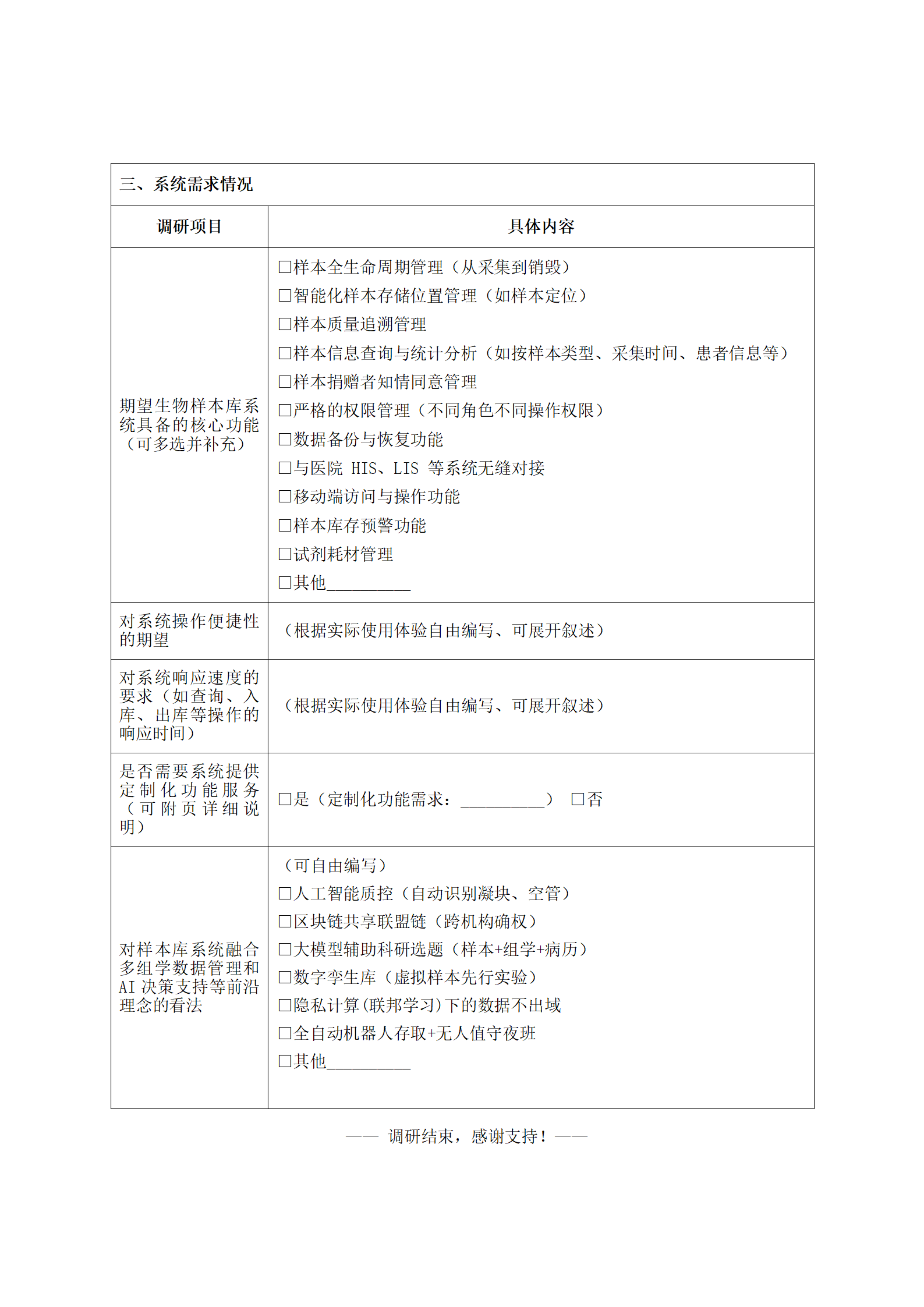【分会通知】关于开展医院生物样本库系统使用体验调研的通知