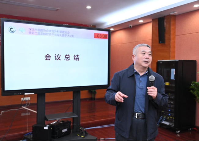 大会名誉主席霍红军教授在总结时表示,深圳市医院协会微创外科管理分会第二届龙城腔镜甲状腺乳腺手术论坛成功举办,为微创外科领域提供了高水平的学术交流平台。本次论坛围绕腔镜甲状腺和乳腺手术的最新进展与实践展开深入探讨,多位省内知名专家分享了微创技术的创新应用与经验,进一步推动了腔镜手术在甲状腺乳腺疾病治疗中的发展。论坛的成功举办不仅提升了区域内甲乳外科的技术水平,也为患者提供了更优质的治疗选择,未来将继续致力于微创技术的推广与创新,造福更多患者。