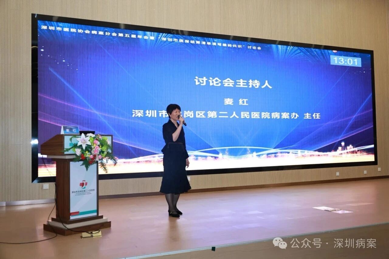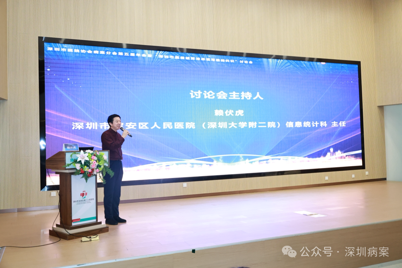 会议下半部分专题讨论环节由深圳市宝安区人民医院病案统计科主任赖伏虎、深圳市龙岗区第二人民医院病案办主任麦红主持,邀请全市各级医院的病案工作者,围绕各专科医保结算清单的填写编码共识与实操问题作相关专题报告。