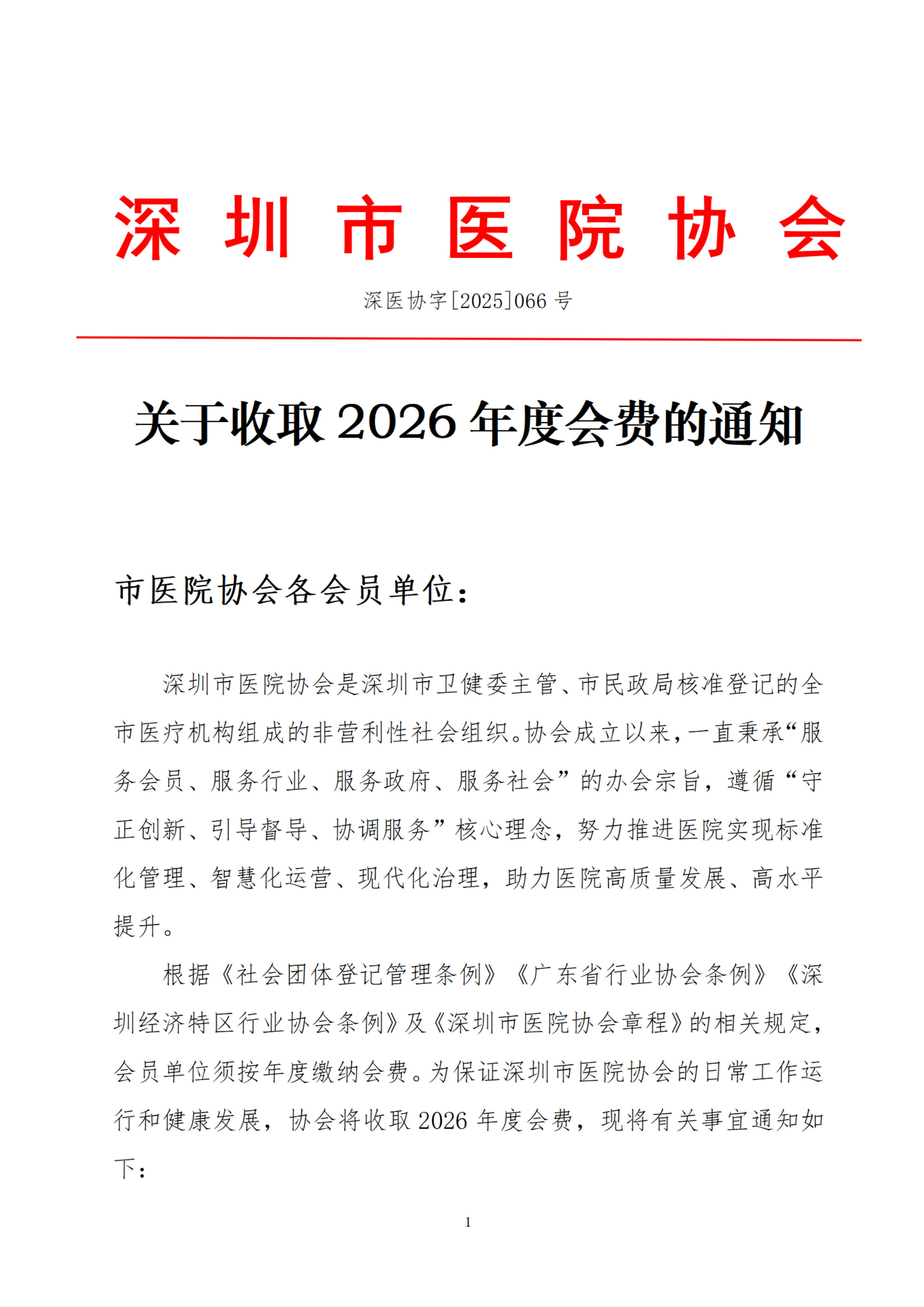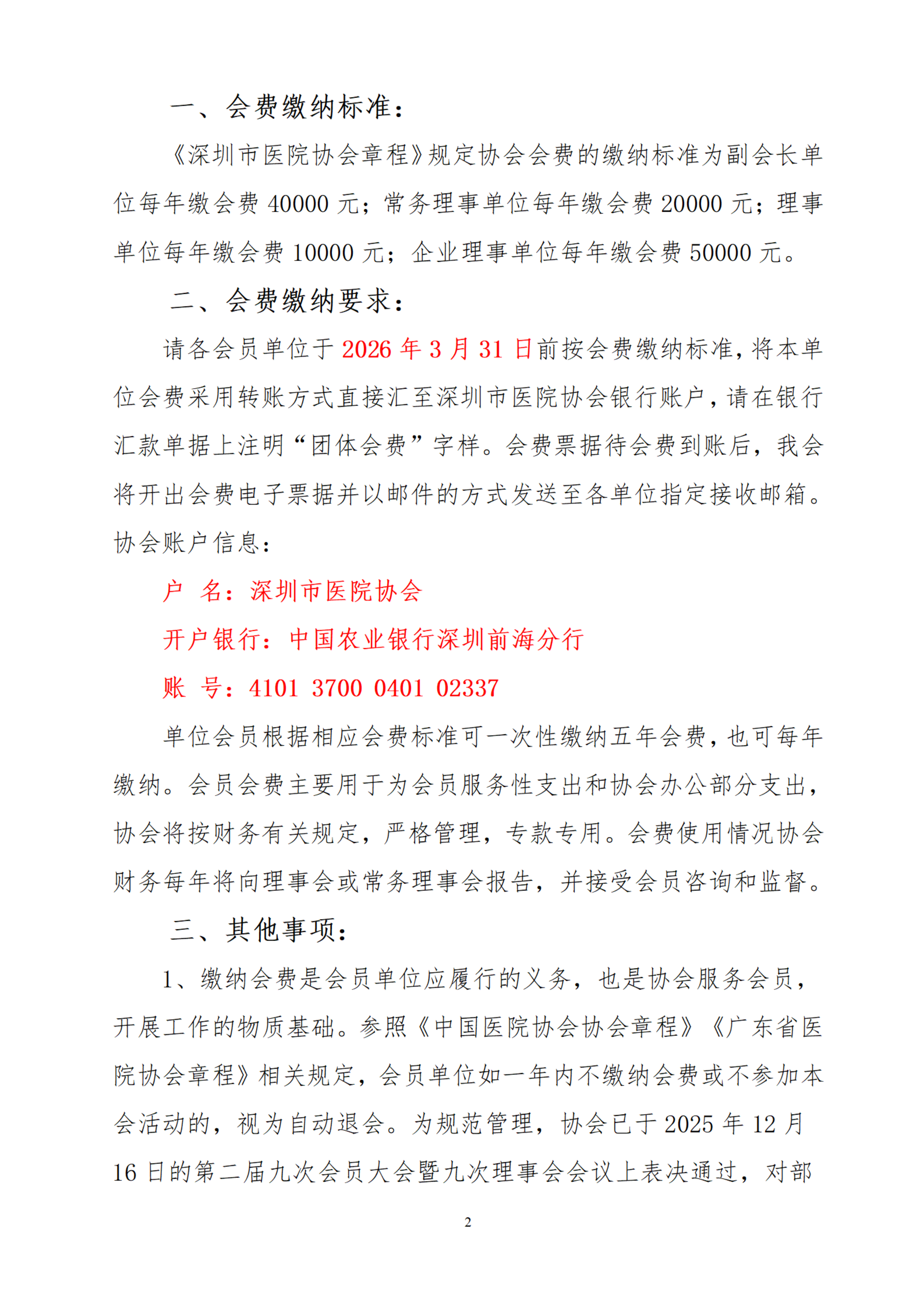 【协会通知】市医院协会关于收取2026年度会费的通知