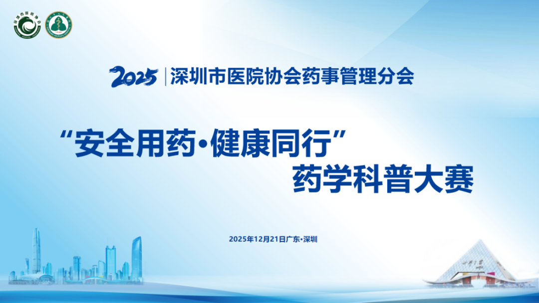 为积极响应“健康中国”战略,提升公众安全用药意识,推动药学科普工作深入开展,由深圳市医院协会药事管理分会主办的“安全用药·健康同行”药学科普大赛决赛于2025年12月21日成功举办。本次大赛汇聚全市多家医疗机构药学专业人才,通过生动、实用的科普宣讲,展现了药师在公众合理用药指导中的专业价值与社会责任。