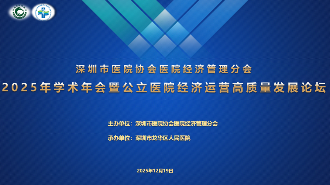 12月19日,深圳市医院协会医院经济管理分会主办,深圳市龙华区人民医院承办的“深圳市医院协会医院经济管理分会2025年学术年会暨公立医院经济运营高质量发展论坛”在龙华区人民医院顺利召开。本次年会以“创新协同、数智融合”为主题,紧扣国家医疗卫生事业改革方向,围绕公立医院高质量发展、现代化治理、运营效能提升等核心议题展开深入交流与前沿探讨。