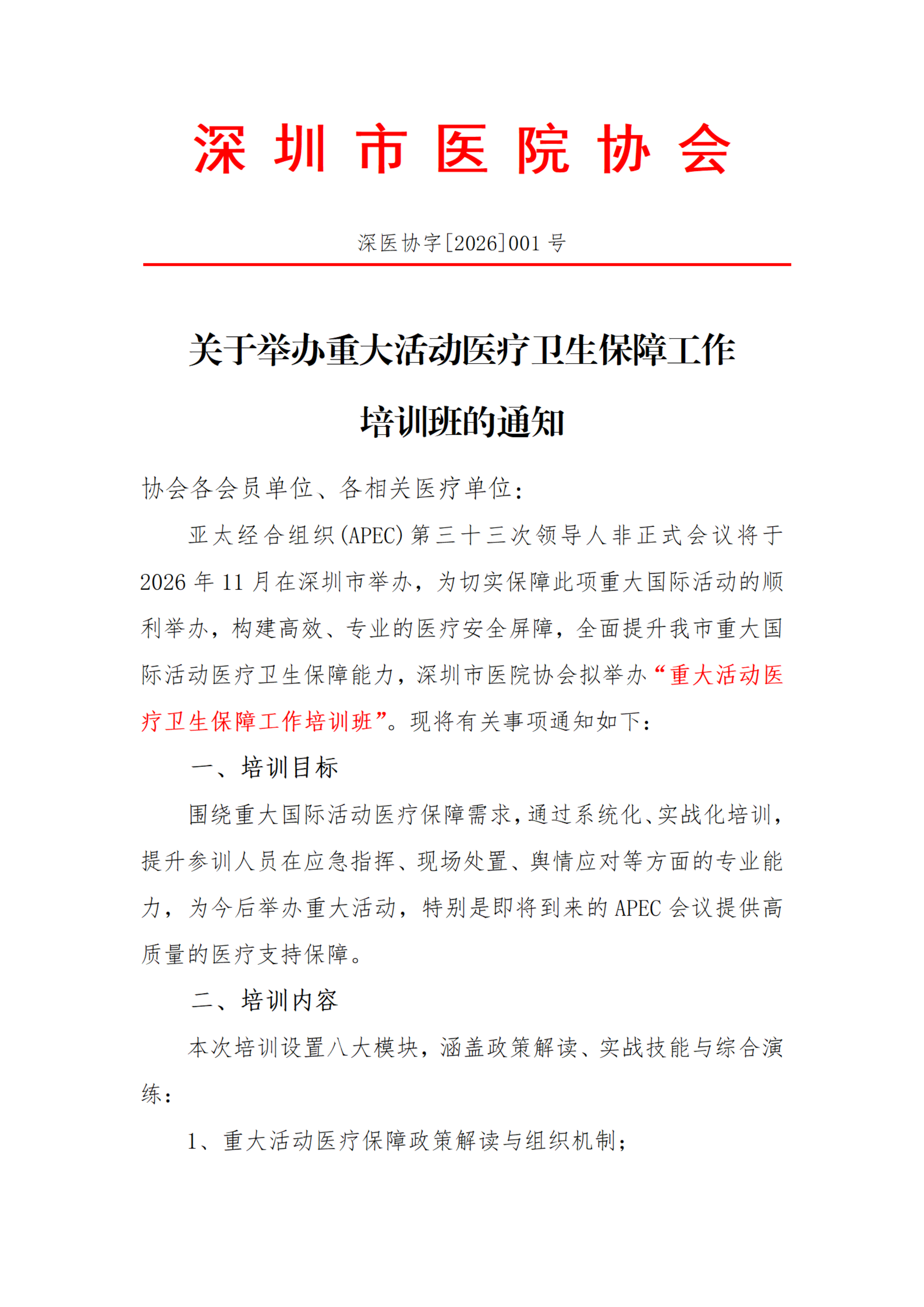 深圳市医院协会关于举办重大活动医疗卫生保障工作培训班的通知.pdf