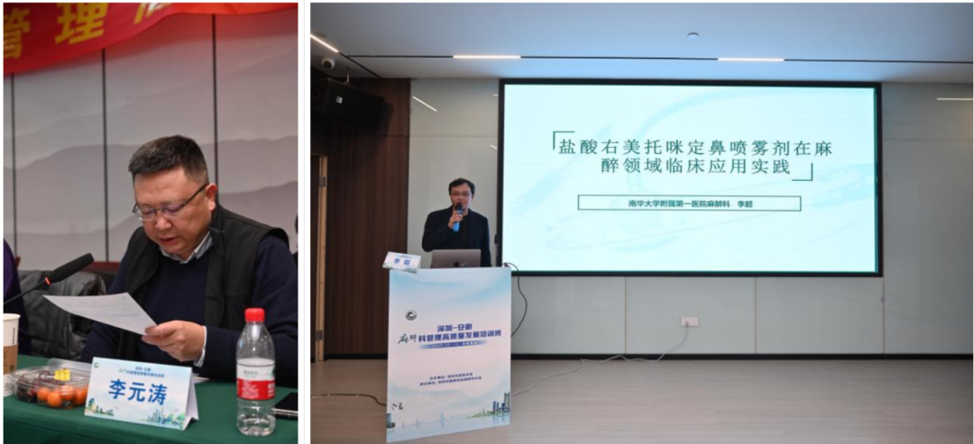 第五环节,在深圳市妇幼保健院李元涛教授的主持下,南华大学附属第一医院李超教授为大家做《盐酸右美托咪定鼻喷雾剂在麻醉领域临床应用实践》专题分享。在分享中李教授指出盐酸右美托咪定鼻喷雾剂作为理想的术前抗焦虑解决方案,具备无创、起效迅速、镇静成功率高且呼吸循环抑制轻等显著优势,临床数据与病例证实,该产品尤其适用于小儿与老年患者,能有效提升围术期安全性与舒适度,是优化术前管理的便捷、安全之选。