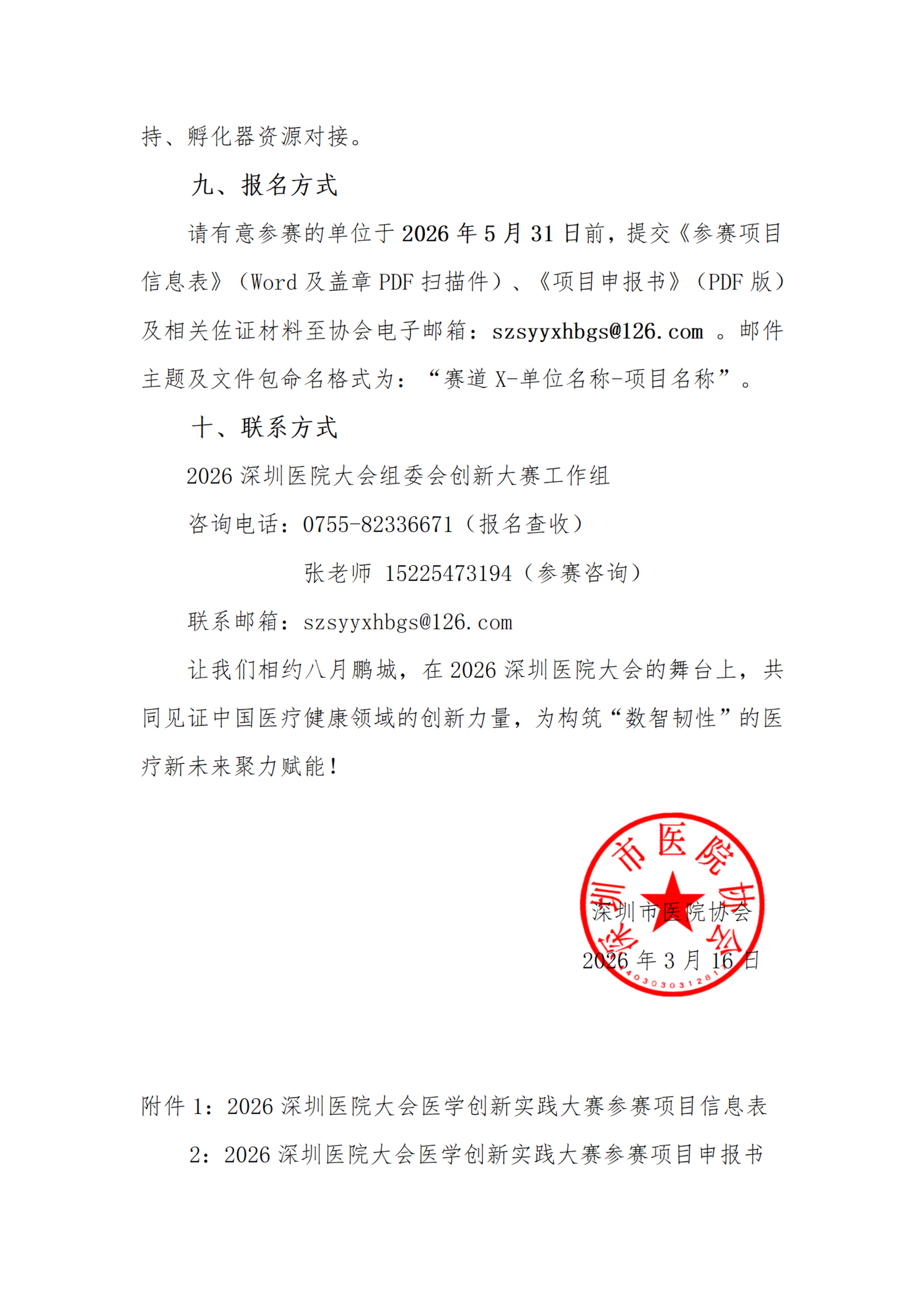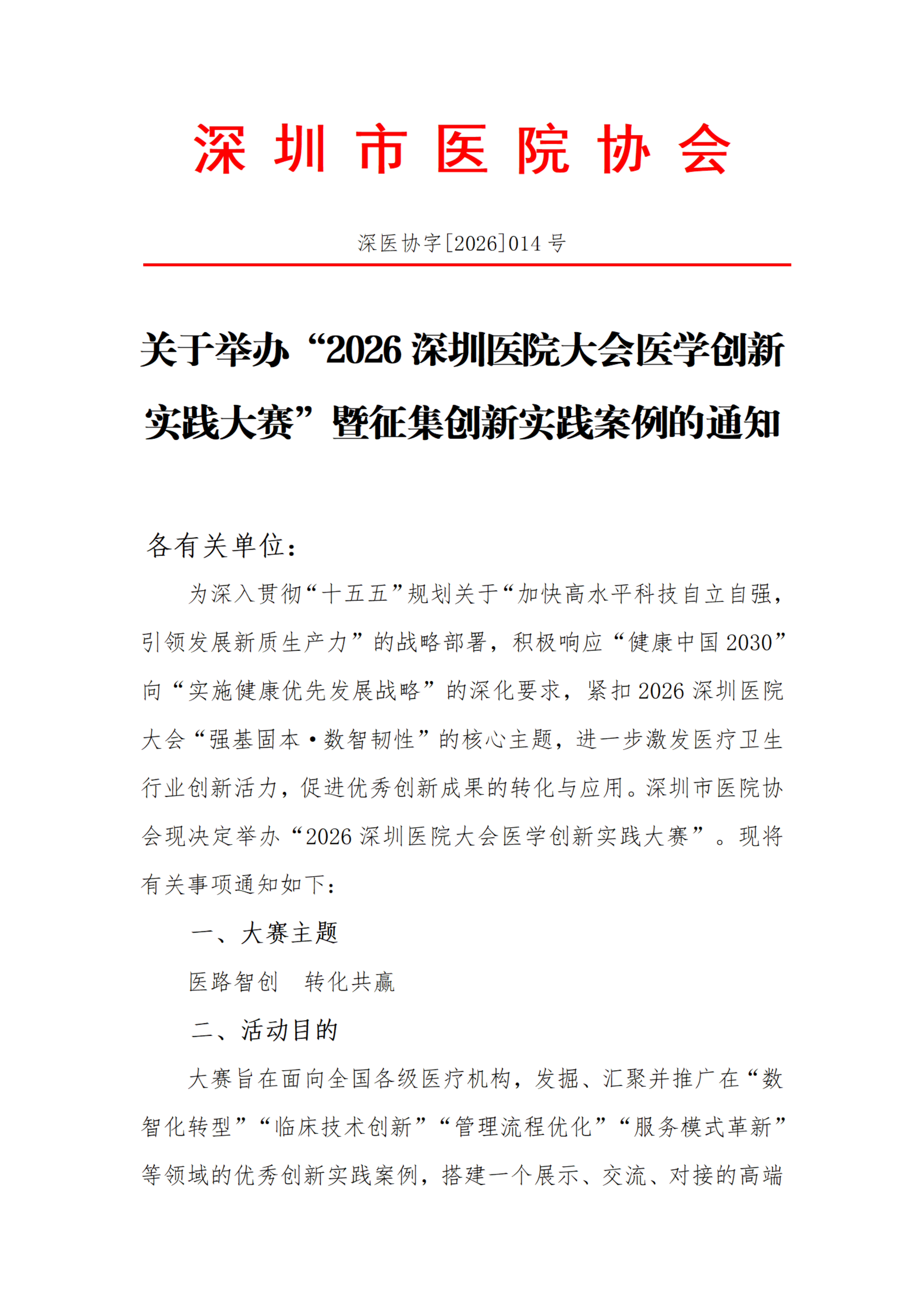 深圳市医院协会关于举办“2026深圳医院大会医学创新实践大赛”暨征集创新实践案例的通知.pdf
