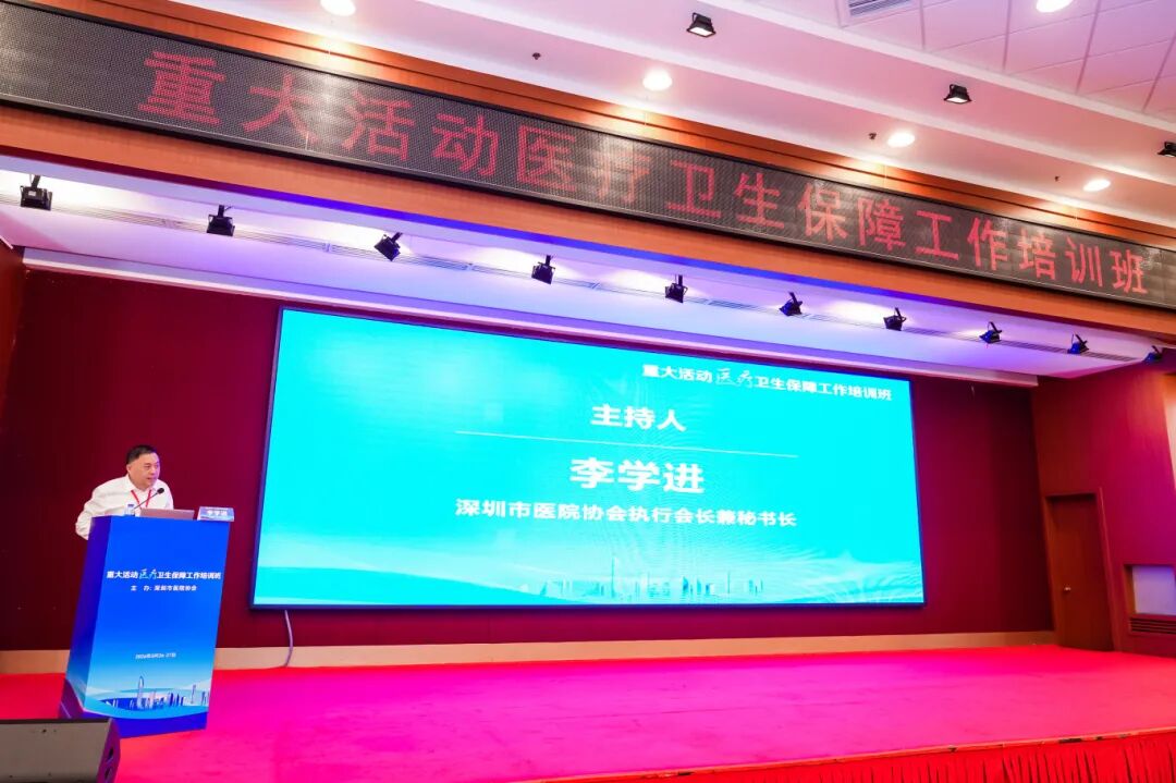 培训班开班式由市医院协会执行会长兼秘书长李学进主持,深圳市医院协会罗乐宣会长致辞中强调,重大活动医疗保障是政治、社会、专业能力的“三位一体”大考,是城市医疗应急能力的“硬核”标尺。本次培训直指实战,设置八大核心模块,特邀多位曾护航北京APEC、冬奥会等国家级盛事的专家天团,旨在锻造一支“召之即来、来之能战、战之必胜”的深圳医疗铁军!同时为了保证培训效果,培训班安排了深圳市医院人民医院急诊科龚平主任等管理专家进行主持点评。