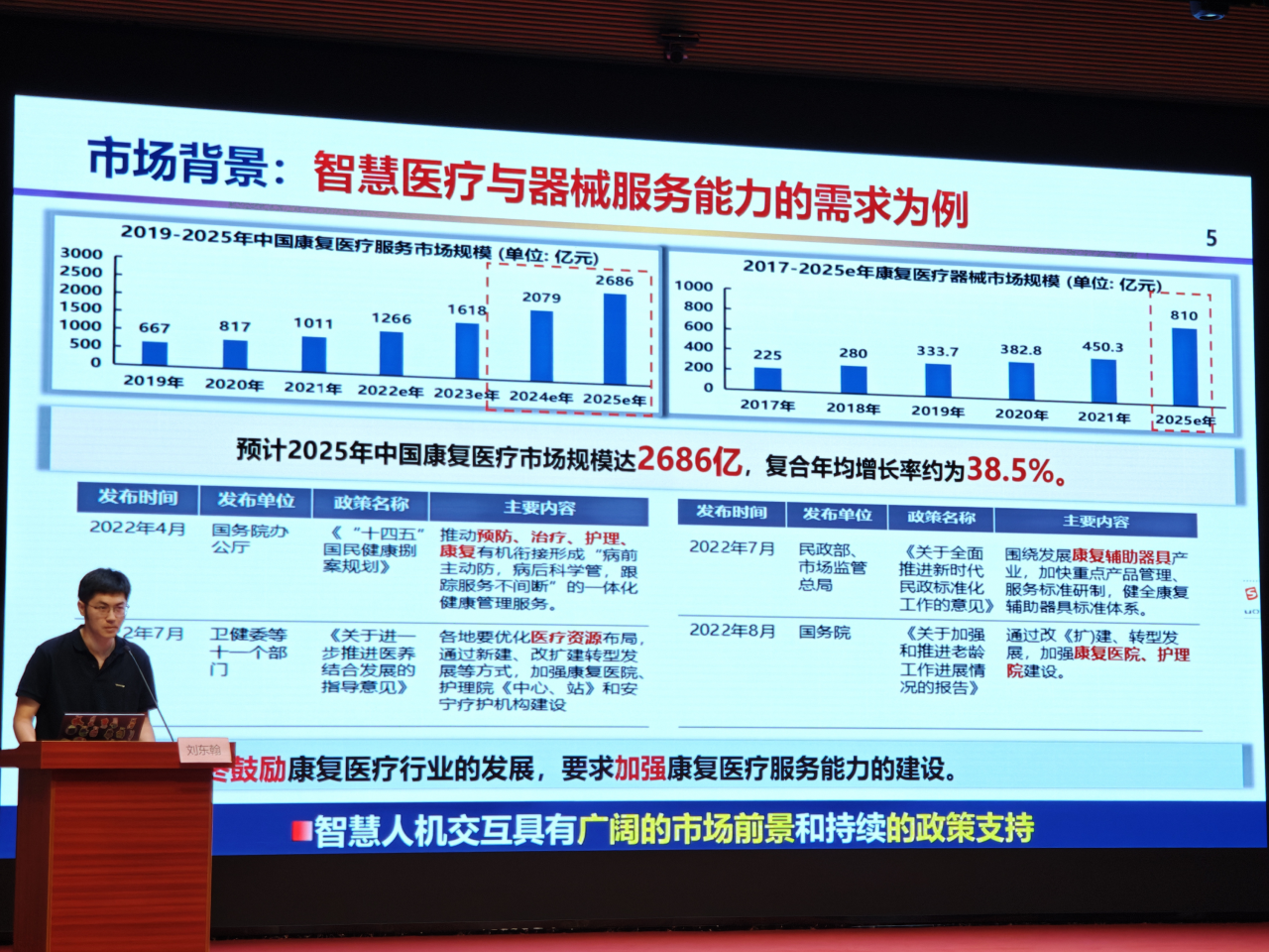 刘洪海教授团队成员刘东翰博士后以《智慧康复与人体行为功能调控》为题,探讨了人机交互、仿生智能、脑机耦合、柔性机器人等在脑疾病康复中的应用与其团队现有多体位上下肢康复相关研究成果。