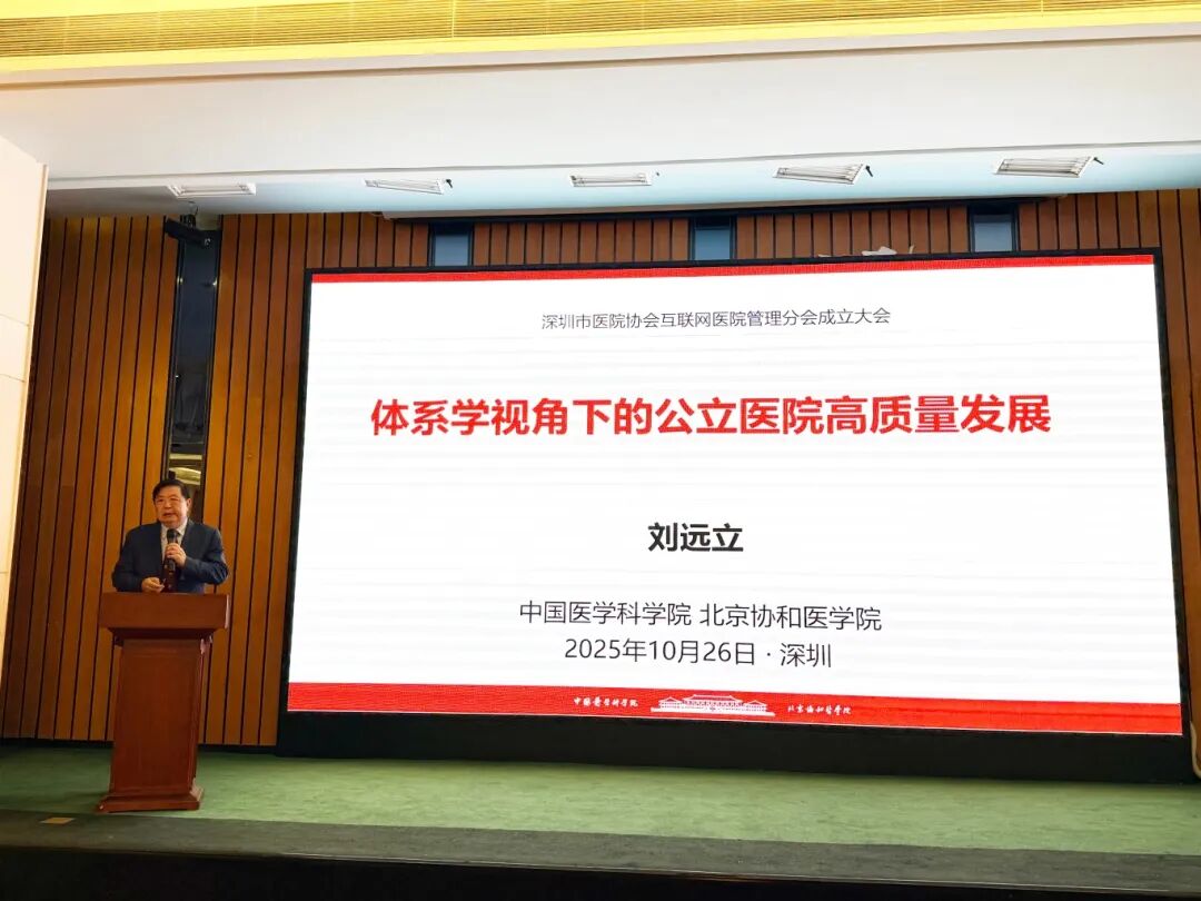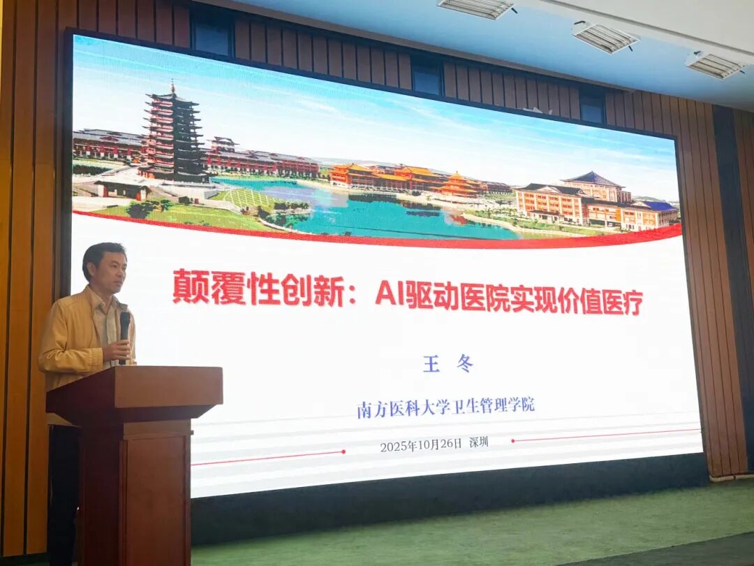 学术会议环节,行业专家分别围绕智慧医疗与医院高质量发展进行专题分享。北京协和医学院长聘教授刘远立从“体系学视角下的公立医院高质量发展”切入,探讨了系统化推进医院管理的路径;南方医科大学副校长王冬以“颠覆性创新:AI驱动医院实现价值医疗”为题,阐述了人工智能在优化诊疗流程、提升医疗效益方面的作用;广东省第二人民医院周其如教授则聚焦“AI赋能互联网医院变迁与高质量发展”,分析了技术迭代背景下互联网医院的演进趋势与发展策略。主题演讲内容翔实、视角前沿,引发了与会者的共鸣。
