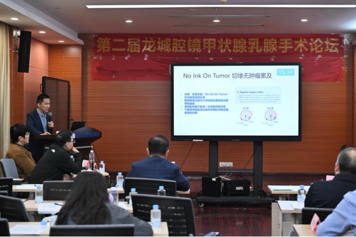 在随后进行的第二届龙城腔镜甲状腺乳腺手术论坛上,多位专家分享了前沿技术与临床经验,包括广州市第一人民医院徐波教授、深圳大学附属华南医院易石坚教授、中国医学科学院肿瘤医院深圳医院高纪东教授、深圳大学附属华南医院王先明教授、深圳市人民医院乳腺外科胡泓教授、北京大学深圳医院胡慧教授、深圳市第二人民医院郭良峰教授、深圳市第三人民医院郑维教授、龙岗中心医院林宝行教授等权威学者。本次论坛内容涵盖腔镜技术与开放手术、肿瘤综合治疗、手术创新术式等多维度议题,为参会者提供了扎实的学术指导和临床借鉴,现场交流踊跃,学术氛围浓厚。