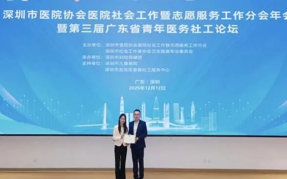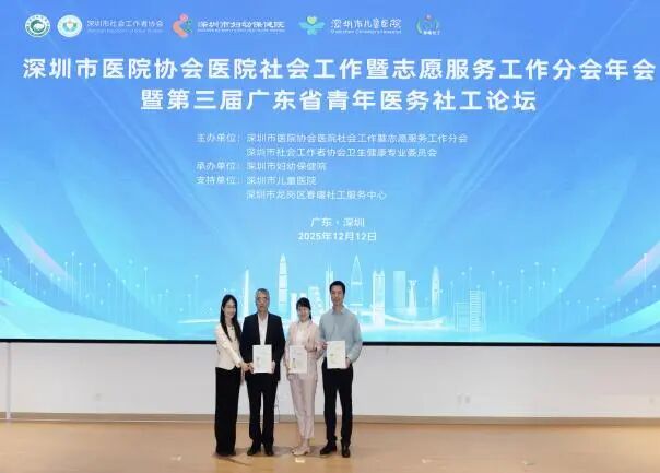12月12日上午,深圳市医院协会医院社会工作暨志愿服务工作分会年会暨第三届广东省青年医务社工论坛在深圳市妇幼保健院成功举办。本次论坛由深圳市医院协会医院社会工作暨志愿服务工作分会(以下简称“分会”)、深圳市社会工作者协会卫生健康专业委员会主办,深圳市妇幼保健院承办,深圳市儿童医院、深圳市龙岗区春暖社工服务中心支持和协办。本次论坛采用线下参与+线上直播的方式,共吸引了省内外和市内多家医疗机构、社工服务机构共计100人线下及2100余人次线上参与。与会专家积极分享医务社会工作在医院信访投诉调解、医疗纠纷化解、社会工作+志愿服务+公益慈善模式等方面的实践及创新发展路径相关主题,并提出诸多建设性的理论和实践建议。
