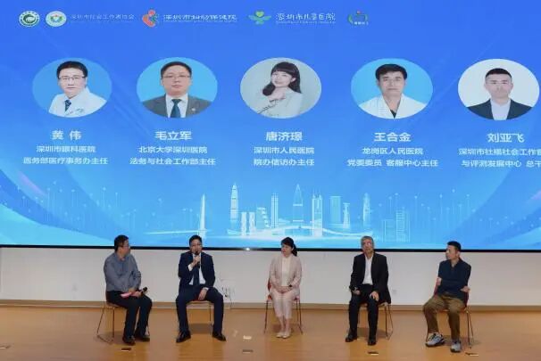 圆桌论坛围绕《嵌入与协同:构建医务社工在医疗投诉中“情理法”融合解决新范式》展开激荡思维,北京大学深圳医院法务与社会工作部毛立军主任、深圳市人民医院院办信访办唐济璟主任、龙岗区人民医院党委委员兼客服中心主任王合金委员、深圳市社福社会工作督导与评测发展中心刘亚飞总干事四位嘉宾就社工参与调解的必要性、角色定位、协同机制及面临的挑战进行了多层次对话。