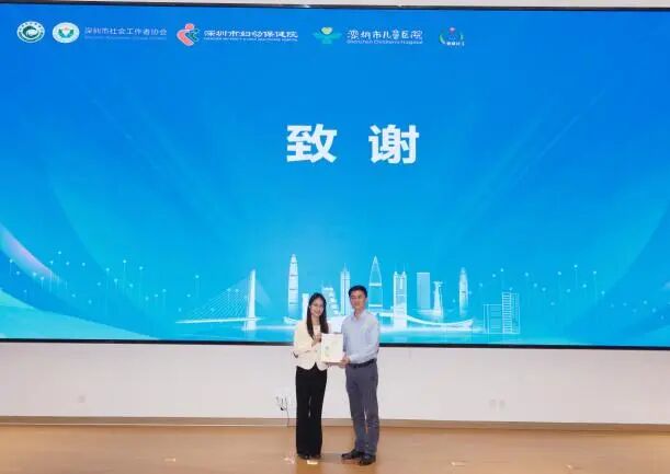 深圳市龙岗区春暖社工服务中心李检阅副总干事以《精准耦合,生态共建:医务社工资源整合升维》为题,阐述了医务社工从传统“资源搬运工”向“生态共建者”的角色转型。她强调,医务社工应成为连接医院与社会的“枢纽”,通过精准评估并“翻译”医患需求,实现资源的高效匹配与灵活转化。深圳市儿童医院社工部陈沅铃社工督导以《医务社工视角下的医疗救助:链接、管理与可持续发展》为分享主题,从微观、中观和宏观三个维度,详细介绍了深圳市儿童医院医务社工在医疗救助领域的系统化实践经验。