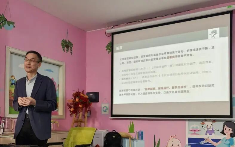 随后,南方医科大学深圳医院儿童精神科高延副主任医师、王冰水副主任医师分别就孤独症谱系障碍的筛查诊断与鉴别诊断、神经发育障碍性疾病康复干预的脑可塑性原理进行分享。李海教授系统地介绍了孤独症谱系障碍诊断性评估方法并做实操示范。