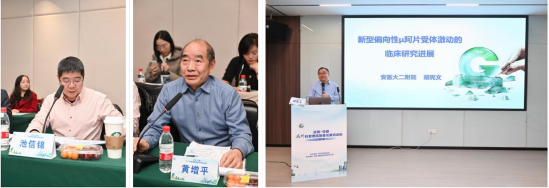 首先,在中山大学附属第七医院池信锦教授和深圳市中医院黄增平教授的主持下,安徽医科大学第二附属医院胡宪文教授为大家做《偏向性μ阿片镇痛药在ERAS疼痛管理中的临床应用与策略》专题分享。在分享中胡教授指出富马酸泰吉利定作为中国首个1类新型偏向性μ阿片受体激动剂,其通过选择性激活G蛋白通路,在实现强效镇痛的同时,显著降低了传统阿片类药物的不良反应,临床研究证实其安全性良好,并获国内权威指南推荐,为术后中重度疼痛管理提供了更优选择。
