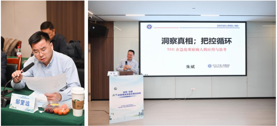 第三环节,在中南大学湘雅医院邹望远教授的主持下,深圳市宝安区人民医院朱斌教授为大家做《TEE在急危重症病人的应用与思考》专题分享。在分享中朱教授总结了围术期心脏超声对麻醉医生的核心价值。通过直观“目测”心功能,能快速区分心衰与容量不足,实现精准循环管理。