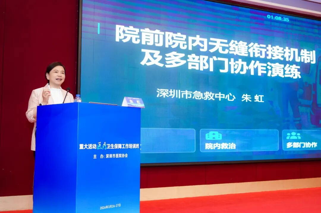 深圳市急救中心主任朱虹主讲“院前院内无缝衔接机制及多部门协作演练”,致力于打通生命救援的“最后一公里”。
