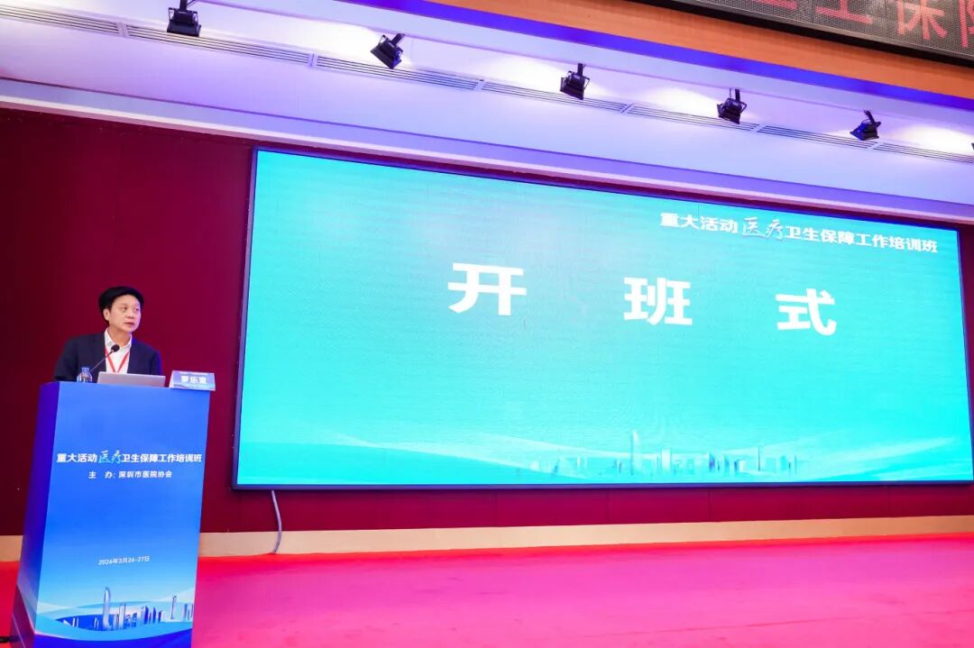 培训班开班式由市医院协会执行会长兼秘书长李学进主持,深圳市医院协会罗乐宣会长致辞中强调,重大活动医疗保障是政治、社会、专业能力的“三位一体”大考,是城市医疗应急能力的“硬核”标尺。本次培训直指实战,设置八大核心模块,特邀多位曾护航北京APEC、冬奥会等国家级盛事的专家天团,旨在锻造一支“召之即来、来之能战、战之必胜”的深圳医疗铁军!同时为了保证培训效果,培训班安排了深圳市医院人民医院急诊科龚平主任等管理专家进行主持点评。